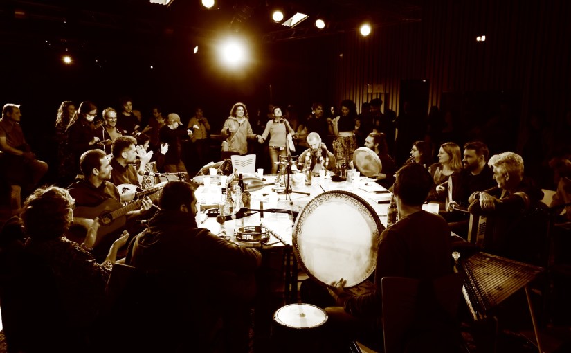 Le collectif Café Aman s’est installée depuis 2019 dans le paysage strasbourgeois en proposant des jam-sessions autour des musiques de Grèce, de Turquie et de l’Orient Méditerranéen. Né de l’envie de pratiquer ces musiques dans un cadre convivial, le Café Aman crée un espace où des musicien·nes issu·es de communautés et traditions différentes, partageant un langage musical commun, peuvent se rencontrer de manière informelle autour d’une table le temps d’une soirée.